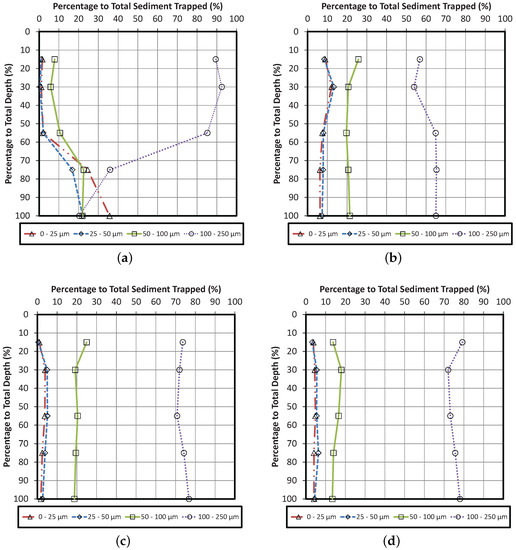 - Similar with previous study [21], a “cake-like” layer, which was mostly made up of 100–250 m sediment particle size, was found to form at the upper 15% of the filter media depth regardless of media configuration being used.