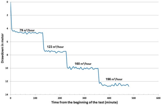 When we compare the hydraulic properties during the pumping and injection tests in the recharge well, we see that the rise of the water level during the injection test is greater than the drawdown during the pumping test (Figure 4 and Figure 5) and the specific rate (absorption rate in the injection test) during the injection test was reduced sharply (Figure 6) to about one third of the specific rate in the pumping test.