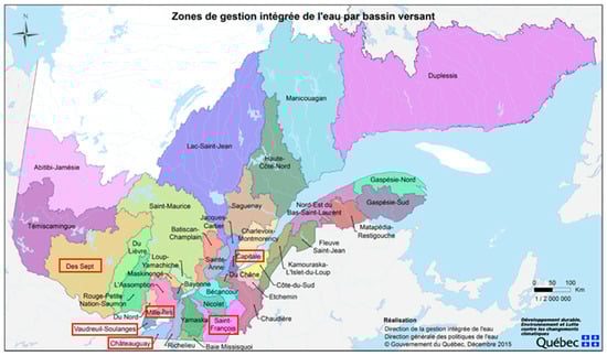 - ROBVQ. Le Reseau des Organismes de Bassin Verssant du Québec; Antoine Verville, A.D., Ed.; ROBVQ: Ville de Québec, QC, Canada, 2014. [Google Scholar]