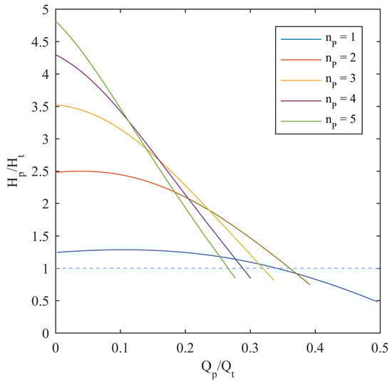 Head ratio of the P&P plant for different numbers of pump stages with .