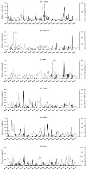 - Havens, K.E.; Fulton, R.S.; Beaver, J.R.; Samples, E.E.; Colee, J. Effects of climate variability on cladoceran zooplankton and cyanobacteria in a shallow subtropical lake. J. Plankton Res. 2016, 38, 418–430. [Google Scholar] [CrossRef]