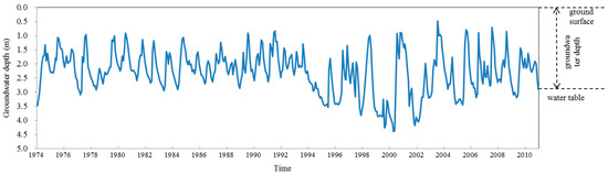 Groundwater is an important water source in much of the world, especially in arid and semi-arid regions [1,2]. In recent decades, groundwater often has been overexploited, particularly in developing countries. Groundwater depth, the distance from ground surface to water table, can be measured by monitor wells, thus can be directly observed. Groundwater depth fluctuations are influenced by natural and anthropic stresses, which can be an indicator for the integrated water resources management. When groundwater exploitation exceeds recharge, groundwater depth increases as the water table falls; in contrast, groundwater depth decreases when recharge exceeds exploitation and can lead to water-logging. Accurate prediction of groundwater depth fluctuation has been crucial for regional sustainable water resources management.