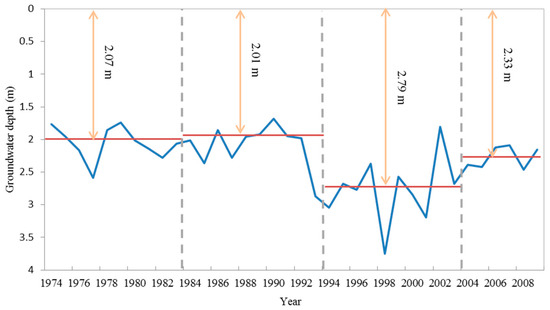 Groundwater depth flucutuation in Mengcheng County, 1974–2010.