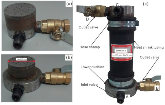 where Q is the total amount of flow water; A is the specimen cross-section area; t is the flow time; L is flow distance (i.e., length of specimen); P1 and, P2 is the hydraulic pressure of the inlet valve and outlet valve, respectively; and are the coefficient of water kinematic viscosity at T °C (the experimental temperature) and 20 °C, respectively.