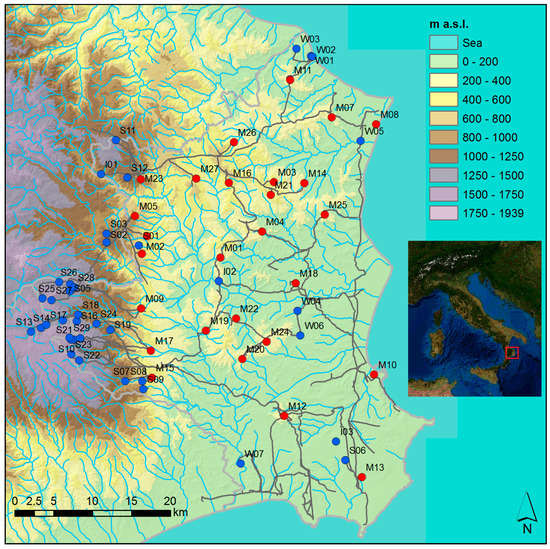 Source nodes in the province of Crotone (“S” means spring, “W” well, “I” intake).