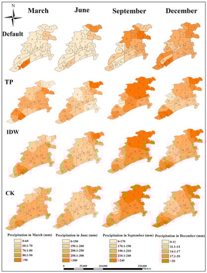 3.1. Analysis of the Spatial Interpolation of Precipitation Distribution