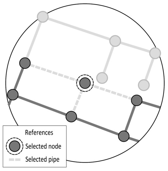 Conversely, if the selected node has few links with the new sector, reducing pressure loss by changing the number of available circulation routes is less likely to succeed. Increasing or decreasing the network capacity and achieving the desired equity depends on the elevation and pressure of the selected node. If a node has a comparatively low elevation in the sector, it has a high pressure. Thus, this node may become the highest pressure node, which reduces equity and defines the further selection process. If a node has a higher elevation than the elevation node average, it may become a new critical node due to its minimum pressure, whose effect tends to reduce sector capacity.