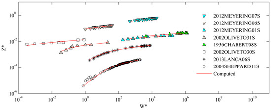 From the experimental data of Sheppard et al. [9], only 129 of the total experiments were considered after applying the filters described in Section 4.3. Table 4 summarizes the source for laboratory data, the number of experiments from the source, and the range of selected dimensionless parameters according to the filtered dataset.