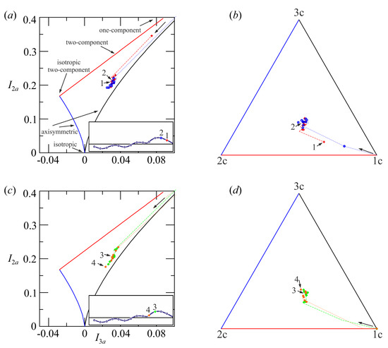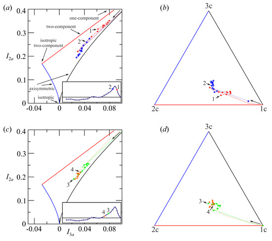 A different synthetic representation of the level of anisotropy of turbulence is obtained through the eigenvalues of the anisotropy Reynolds tensor. Let , and be the three eigenvalues in descending order, the tensor can be expressed as a linear combination of the three tensors of a basis (see Banerjee et al., 2007 [19]) with coefficients given by