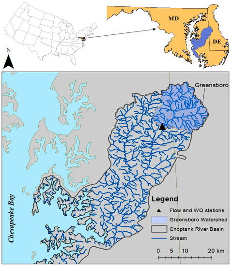- McCarty, G.W.; McConnell, L.L.; Hapernan, C.J.; Sadeghi, A.; Graff, C.; Hively, W.D.; Lang, M.W.; Fisher, T.R.; Jordan, T.; Rice, C.P.; et al. Water quality and conservation practice effects in the choptank river watershed. J. Soil Water Conserv. 2008, 63, 461–474. [Google Scholar] [CrossRef]