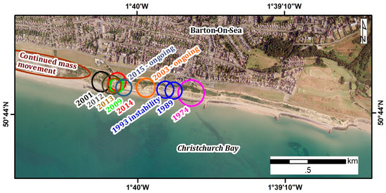 - West, I. Barton & Highcliffe Coast Erosion. Available online: http://www.southampton.ac.uk/~imw/Barton-Erosion-History.htm (accessed on 21 November 2017).