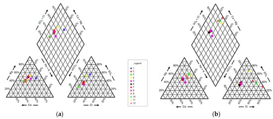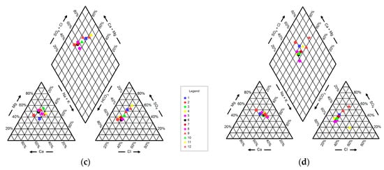 Piper diagram of groundwater quality for samples collected in (a) March 2014; (b) June 2014; (c) September 2014; and (d) November 2014.