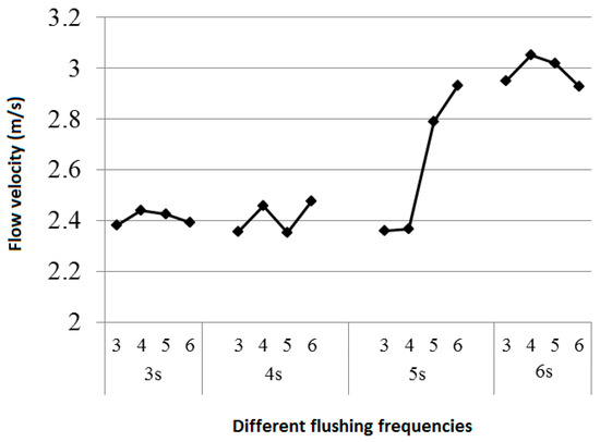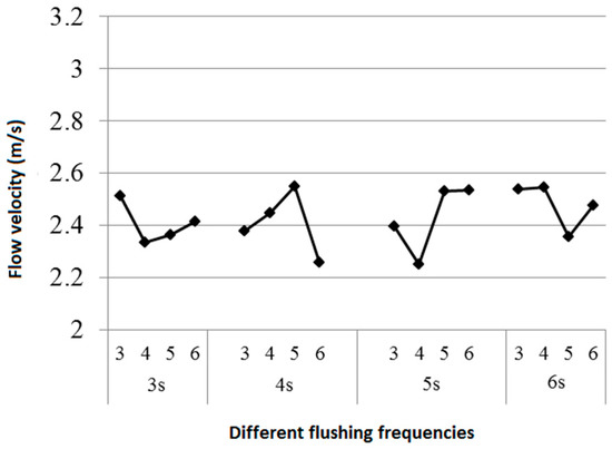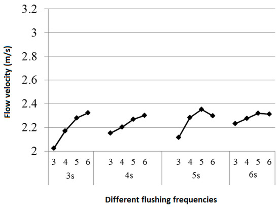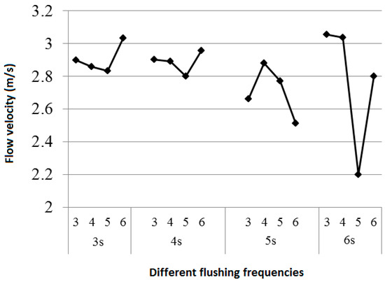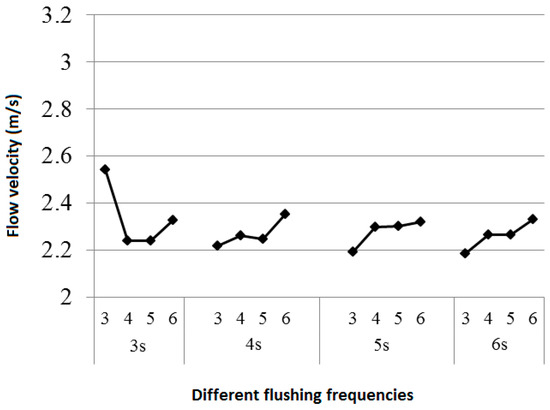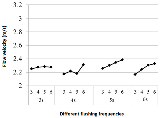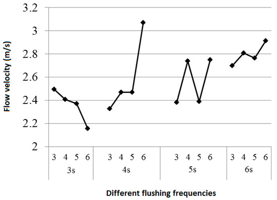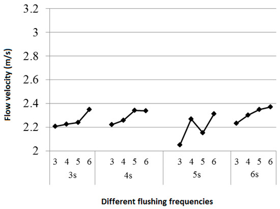 Figure 14 shows the average flow velocity of the water flow in the pipe by applying the above flushing conditions.