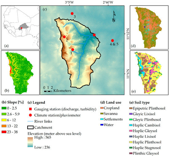 - Karambiri, H.; Ribolzi, O. Identification of sediment sources in a small grazed Sahelian catchment, Burkina Faso. In Sediment Budgets 1; Walling, D.E., Horowitz, A., Eds.; IAHS Press: Wallingford, UK, 2005; p. 291. [Google Scholar]