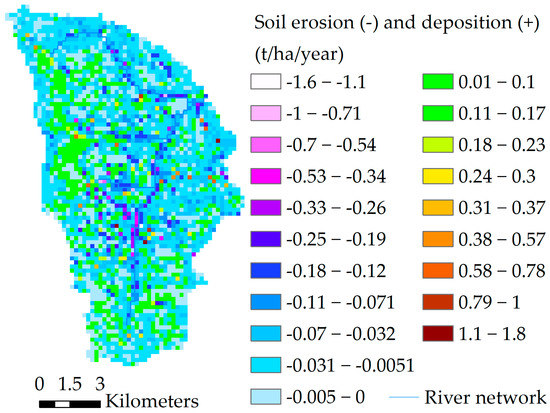 | Schmengler [25] | WATEM | Burkina Faso | 20 m/annual | 7.9–23.6 km2 | - | - |