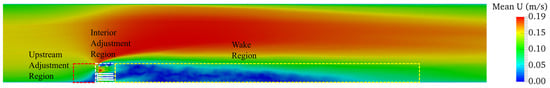 Here, denotes the control volume tightly enclosing the structure, which is marked by the red dashed line in Figure 1b. τ denotes the Reynolds stress tensor. n is the surface normal vector, and denotes the streamwise direction. In this study, both methods were applied to the fully-resolved case and solid barrier case. For the porous media case, since there was no physical structure, only the second method was used. In fact, according to Equation (8), at steady state, the pressure and shear stress on the enclosing box should be balanced by the volume integration of within if we assume other forces are small. This is also the foundation for the momentum analysis in previous studies [,,].