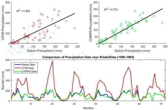 Temporal correlation of CFSR and CHIRPS precipitation estimation to station precipitation data over the temporal range 1990–1995.