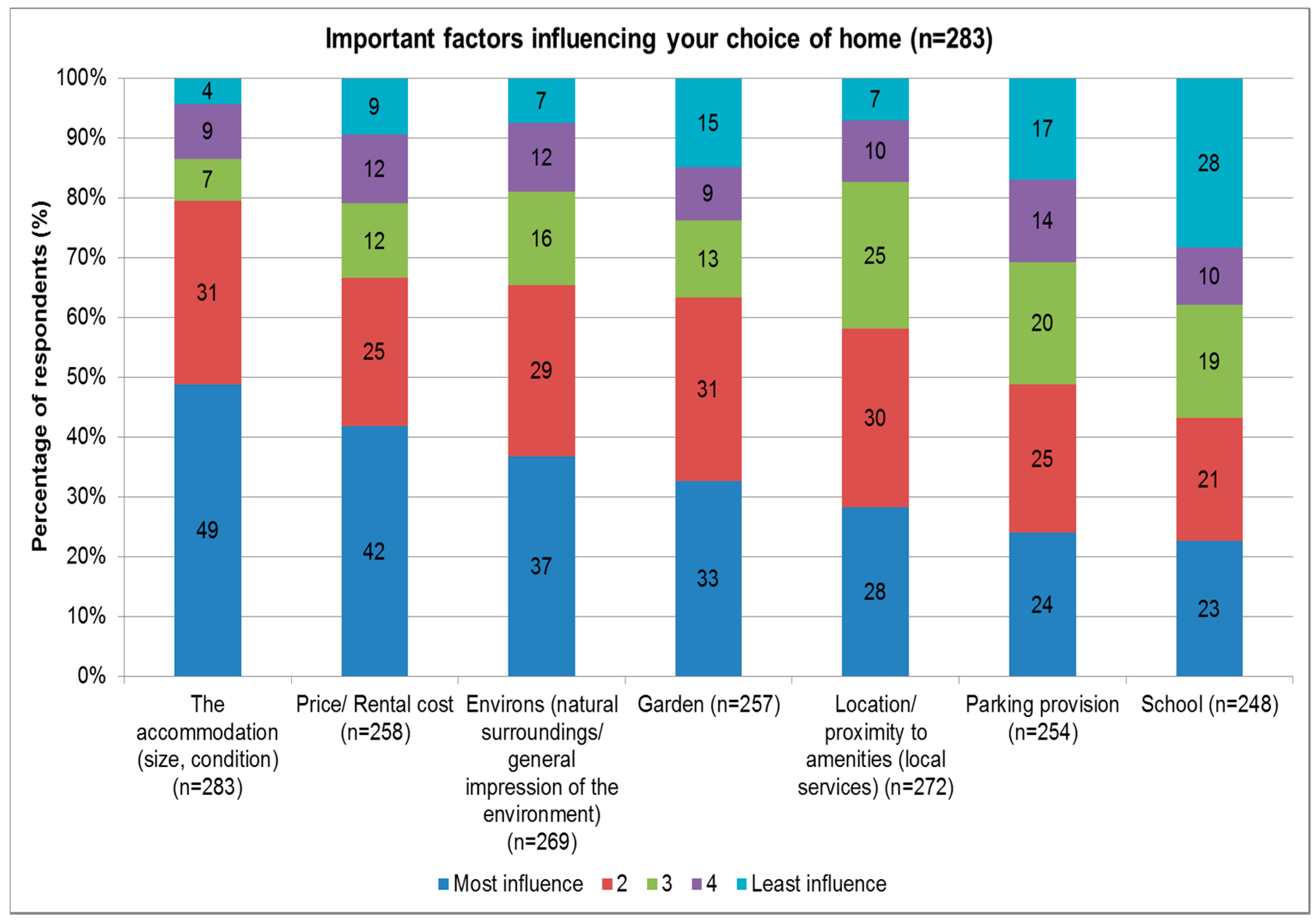 Important factors influencing a resident’s choice of home, rated 1: greatest influential factor to 5: least influential factor.