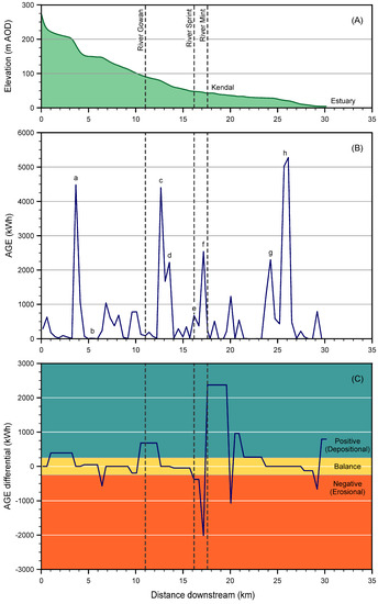 - Barker, D.M.; Lawler, D.M.; Knight, D.W.; Morris, D.G.; Davies, H.N.; Stewart, E.J. Longitudinal distributions of river flood power: The combined automated flood, elevation and stream power (CAFES) methodology. Earth Surf. Process. Landf. 2009, 34, 280–290. [Google Scholar] [CrossRef]