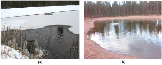 (a) Basin infiltration at Kuivala MAR plant in November; (b) Basin infiltration trials at Virttaankangas MAR plant in October 2009 (Photographer, P. Jokela).