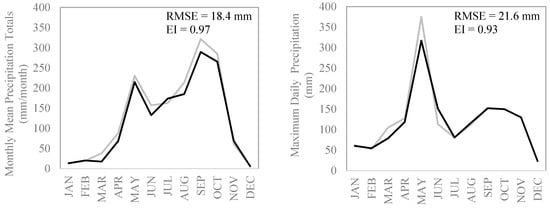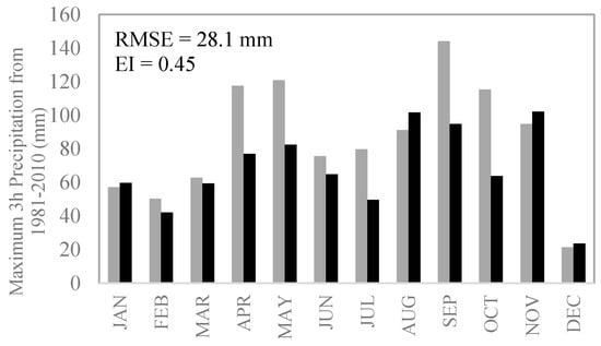 The maximum 3 h precipitation for each month is compared between disaggregated and observed data for the period 1981–2010 (Figure 5). The disaggregated data indicated under prediction, especially in the months of April, May, September and October.
