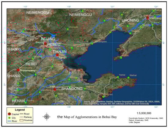 Map of agglomerations in the Bohai Bay city agglomeration.