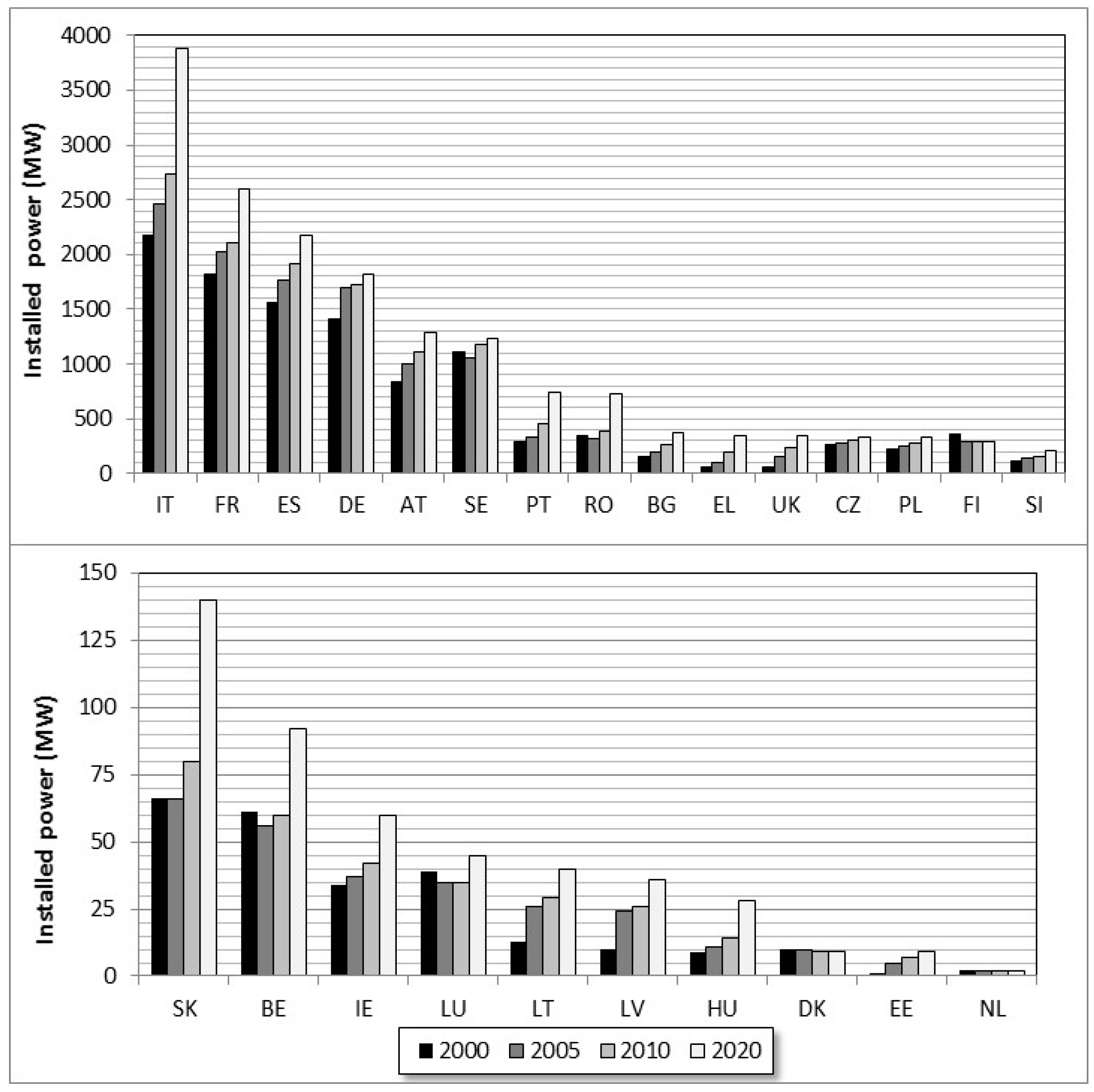 Planned installation of small hydropower capacity in 2005–2020 by European Union countries (adapted from [40]).
