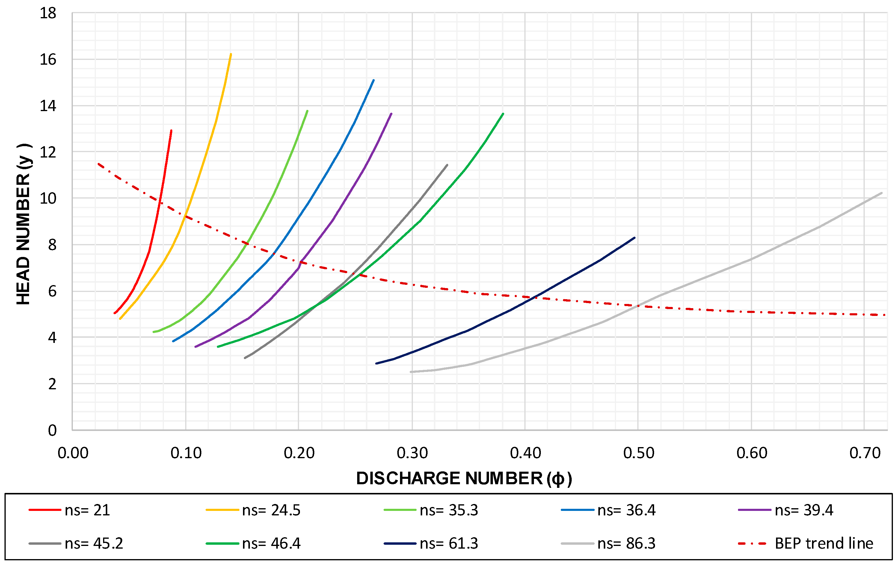 Head number depending on the discharge number (adapted from [112,113]).