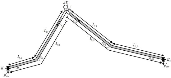 - Expansion equation for the air pocket i:the thermodynamic behaviour of the air pocket [] is treated by using a polytropic model [,]Considering the equations presented before, then:where k is the polytropic coefficient: if , then the process is isothermal, but, if , the process is adiabatic.In Equations (5) and (7), if the air pocket i is only located in pipe , then and .