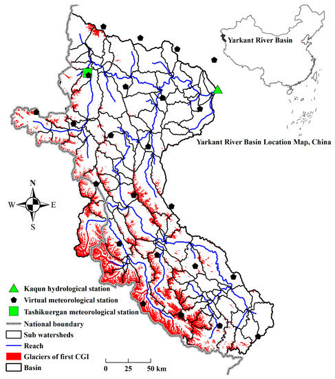 - Gao, X.; Ye, B.; Zhang, S.; Qiao, C.; Zhang, X. Glacier runoff variation and its influence on river runoff during 1961–2006 in the Tarim River Basin, China. Sci. China Earth Sci. 2010, 53, 880–891. [Google Scholar] [CrossRef]