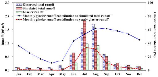 3.4. Multi-Year Monthly Average Glacier Runoff Contribution