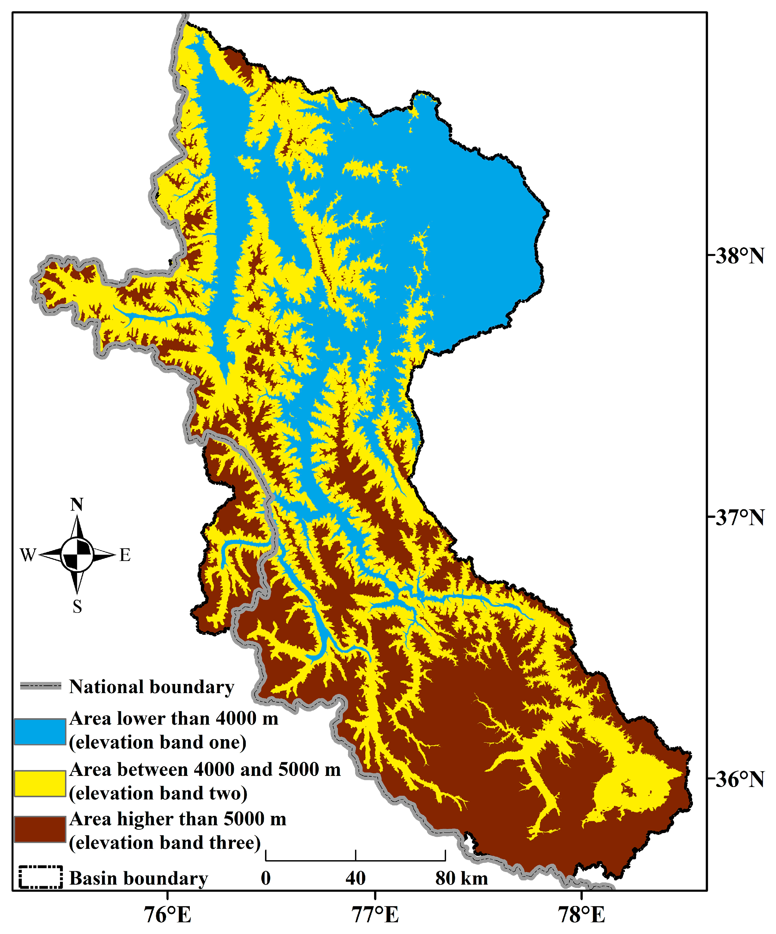 Elevation bands of the YRB.