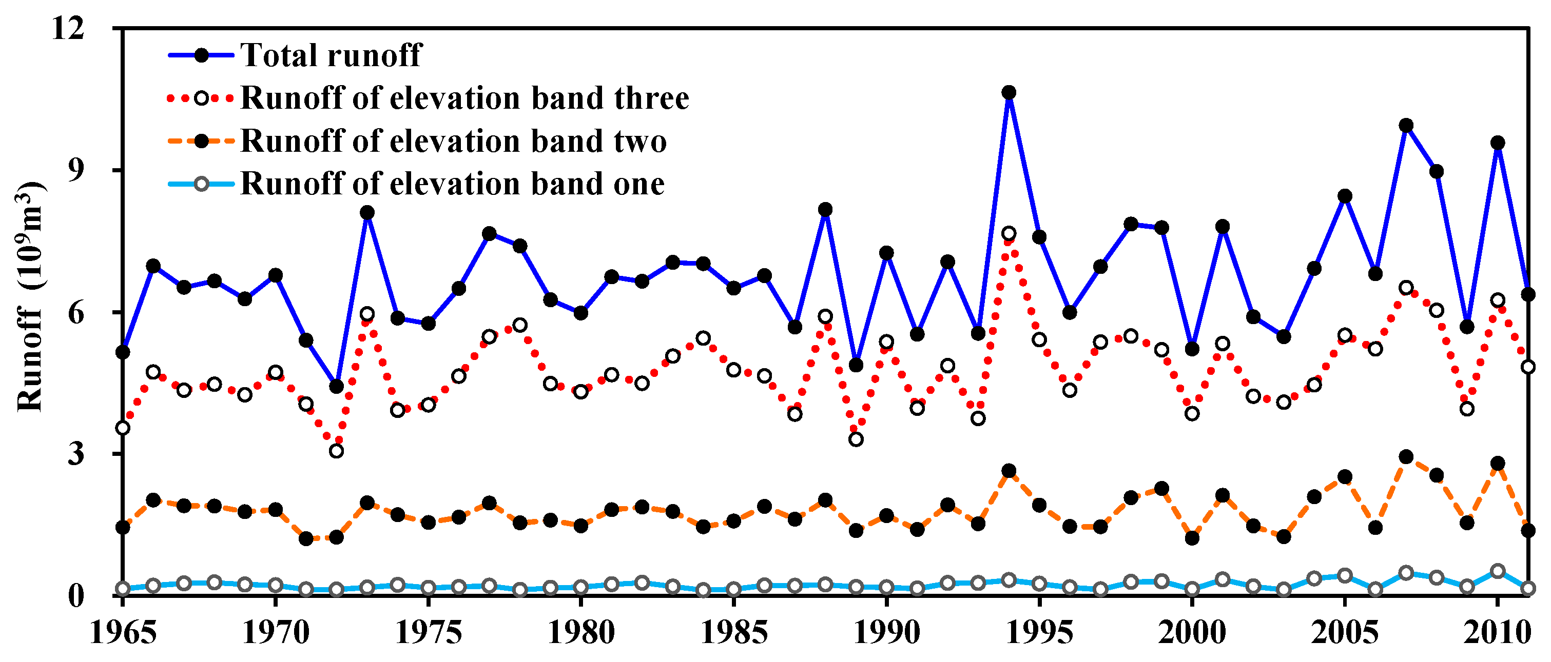 Annual runoff of different elevation bands.