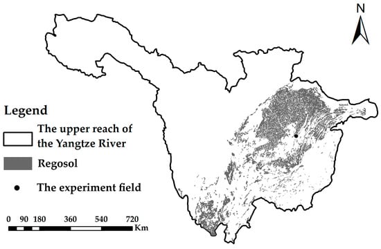 Regosol soil, which accounts for 13.18% of the upper reach of the Yangtze River, has the characteristics of abundant fertility but high erodibility, resulting from hillslope in the drainage area (Figure 1) [32]. In our research, the experimental field was located in Chongqing City in the upper reach of the Yangtze River, where soil and water loss and NPS pollution are serious problems because of abundant rainfall and steep slopes [33]. The experimental field (106°43′ E, 29°53′ N) was located on a hillside of the Beibei district of Chongqing City where the soil type is regosol. Precipitation and rainfall intensity in that location were the factors representing rainfall characteristics, and the slope was chosen to represent typical terrain, one that has significant effects on TN losses.