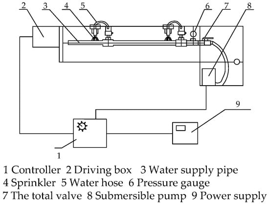 In our experiments, a Norton nozzle-type rainfall simulator was adopted, consisting of a water supply system as well as a spraying system and produced in the United States (Figure 3). The height of the nozzle was 2.5 m and the hydraulic pressure was 0.04 M Pa, which made the sizes and distribution of raindrops were similar to those in nature. The rainfall intensity could be set at different levels by changing the frequency of nozzle swings and was stable to maintain a consistent condition.