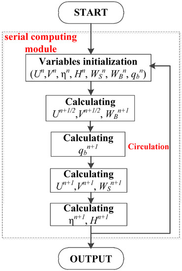 The solution steps of the non-hydrostatic model (parallel computing) are shown in flow chart form in Figure 4.