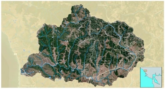 - Hammack, L.; Hulette, L.; Prunuske, L. Salmon Creek Integrated Coastal Watershed Management Plan; Gold Ridge Resource Conservation District: Occidental, CA, USA, 2010. [Google Scholar]