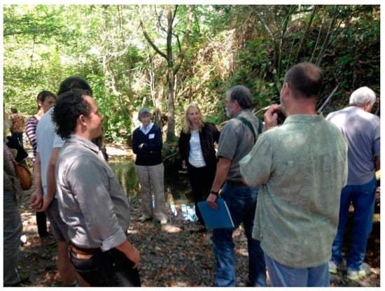 In closing, I would like to extend the idea of watershed collaborations still further, by bringing in other species—beavers, salmon, redwood trees—into entangled and symbiotic relations with humans who manage waterscapes. In this view, through a process of engaging in stream monitoring or rearing salmon eggs in sluice boxes, humans recognize (to borrow Donna Haraway’s phrase), that “the partners do not precede their relating; all that is, is the fruit of becoming with” [85]. Such collaborations may not involve government agencies or non-governmental institutions, yet still often reshape material-semiotic configurations “from below” as they discursively affect human practices of using water, stone, soils, plants and animals; or sometimes, concepts of humans as collaborators with other species, as situated within a reciprocal web of becoming, may filter into policy discourses or political debates. Such transgressive knowledge practices re-frame ecosystems as multispecies commons and emphasize interdependence rather than conflict between human and ecological needs for water and offer the best chance for advancing sustainability and equity among and beyond the human.