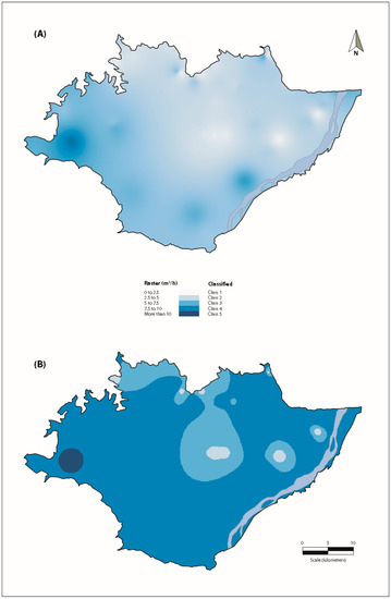 (A) Raster and (B) classified outcome for mechanized borehole yield. Estimates based on official data [65].