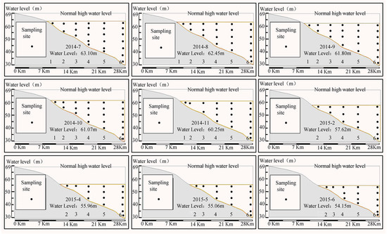 To fully understand the situation of water quality, stratified monitoring is normally needed. Reservoir water depth changes dynamically due to rainfall and reservoir operation [24], and the position of sampling sites changes accordingly.