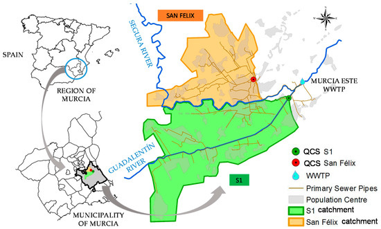 Murcia is a southeastern Spanish city with an equivalent population of 525,027. It is situated in a valley at the confluence of the Guadalentín and Segura rivers (Figure 1). The study site includes two urban catchments, called San Félix and S1. Both catchments are residential areas, their impervious areas being 21% and 47%, respectively (Table 2). The sewer system is combined incorporating storm water. Due to the flat topographic conditions, there are several sewer pump stations. Both catchments flow into “Murcia Este” Wastewater Treatment Plant whose maximum capacity during dry weather is Qmaxdw = 10.000 m3/h. At the outlet pipe of each catchment, monitoring equipments were placed in Quality Control Stations (QCS) (Figure 1).
