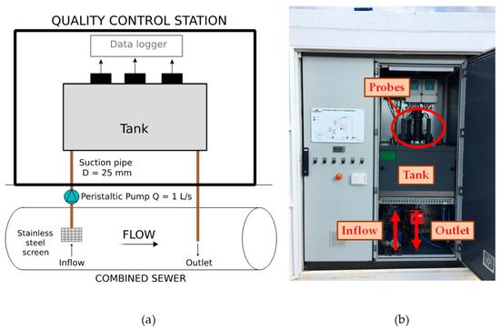 (a) Scheme of Quality Control Station devices; and (b) Image of QCS.