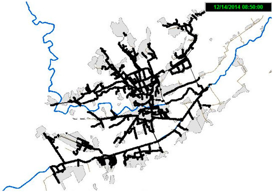 The US Environmental Protection Agency’s Storm Water Management Model (USEPA) is a numerical model that allows simulating the hydrological and hydraulic behavior of an urban drainage system. A calibrated SWMM hydraulic model of the city of Murcia has been used. It serves to study the catchment response to any rainfall event (Figure 3). The characteristics of the model are shown in Table 3. The total length of the network included in the model is around 234.5 km.