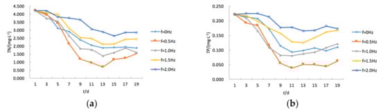 (a) TN concentration under different vibration frequencies; (b) TP concentration under different vibration frequencies.