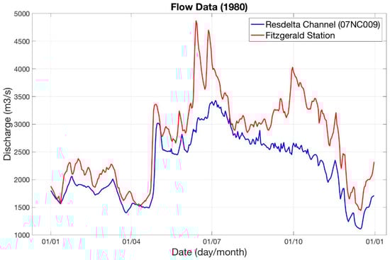 Measured flow data at Resdelta Channel and Fitzgerald Station.