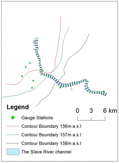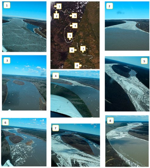 Geomorphological factors of the river system, such as the sinuosity, channel width, and slope, have a great influence on the river ice regime and, due to its high flows and low gradient, make the Slave River Delta more conducive to ice jam flooding than the rest of the river [].