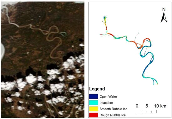- Chu, T.; Lindenschmidt, K.E. Integration of space-borne and air-borne data in monitoring river ice processes in the Slave River, Canada. Remote Sens. Environ. 2016, 181, 65–81. [Google Scholar] [CrossRef]