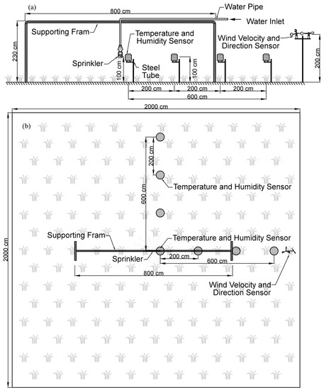 - Zhao, W.X.; Li, J.S.; Li, Y.F. Modeling sprinkler efficiency with consideration of microclimate modification effects. Agric. For. Meteorol. 2012, 161, 116–122. [Google Scholar] [CrossRef]