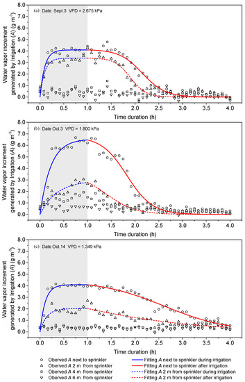 Jiao, J.; Su, D.; Wang, Y. Dynamics of Water Vapor Content around Isolated Sprinklers: Description and Validation of Model. Water 2017, 9, 307. https://doi.org/10.3390/w9050307