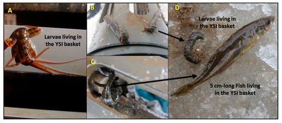 Larvae and fish adopting the YSI 6600 V2 basket as a wintering habitat at Site E2.
